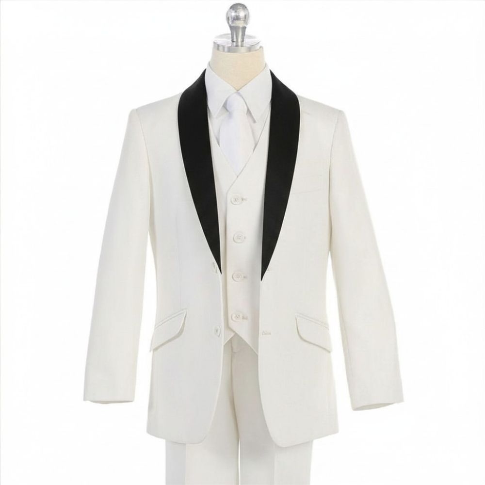 Boy Plus Size Husky 7-piece Detachable Shawl Lapel Suit, Ivory