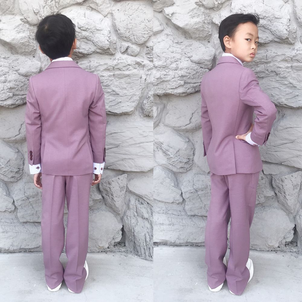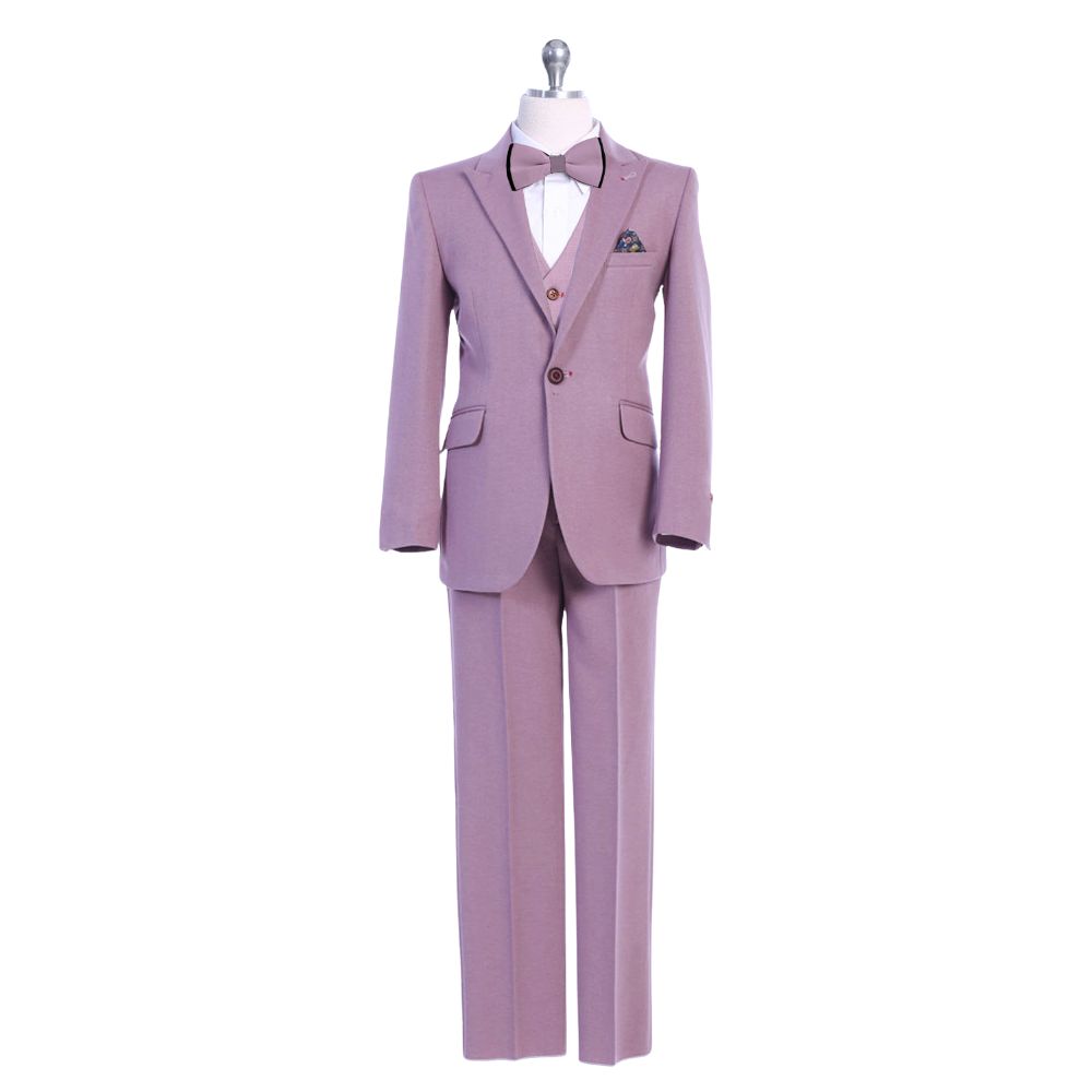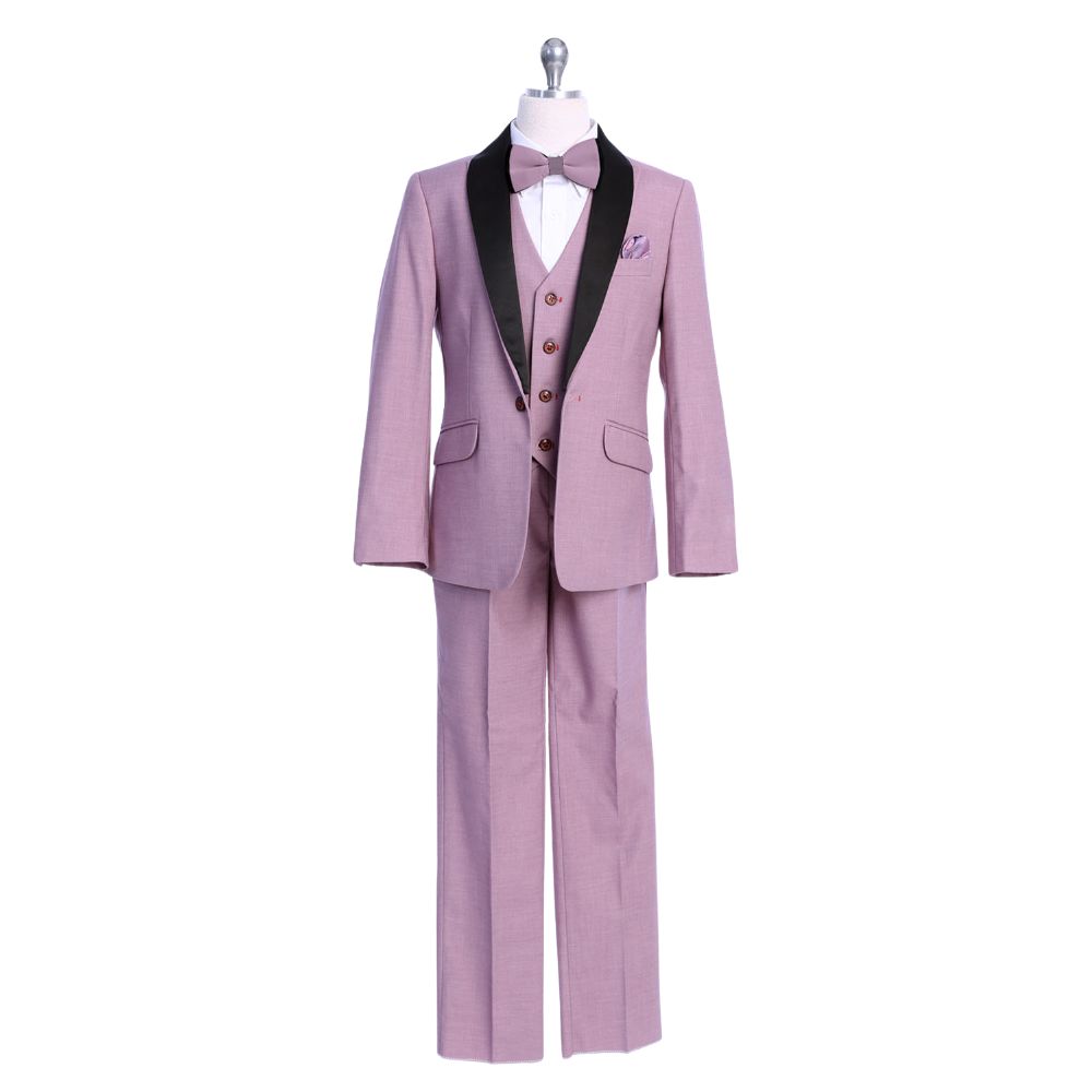 Boy Slim-Fit 5-piece Suit Attachable Shawl Lapel, Mauve