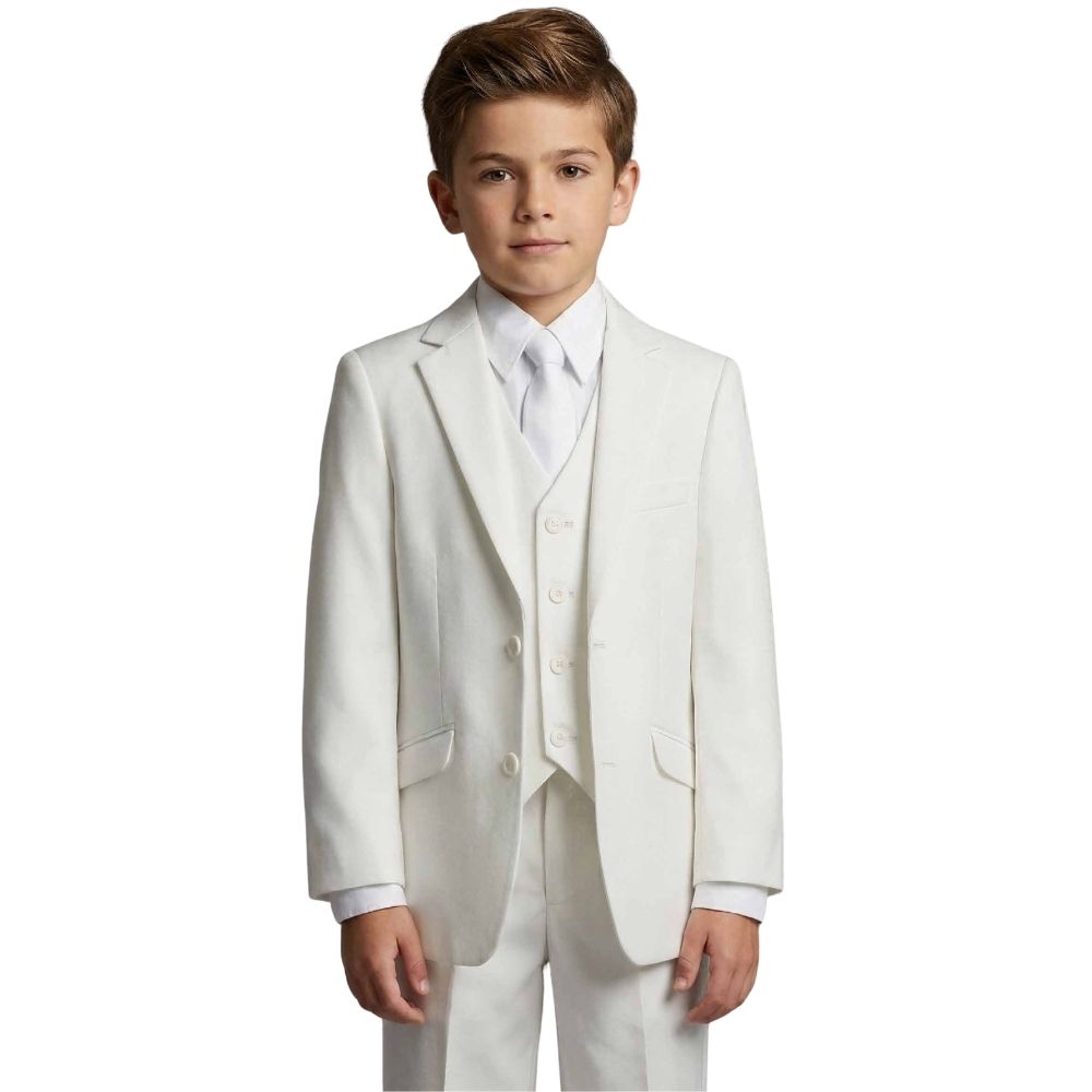 Boy Slim-Fit 7-piece Detachable Shawl Lapel Suit, Ivory