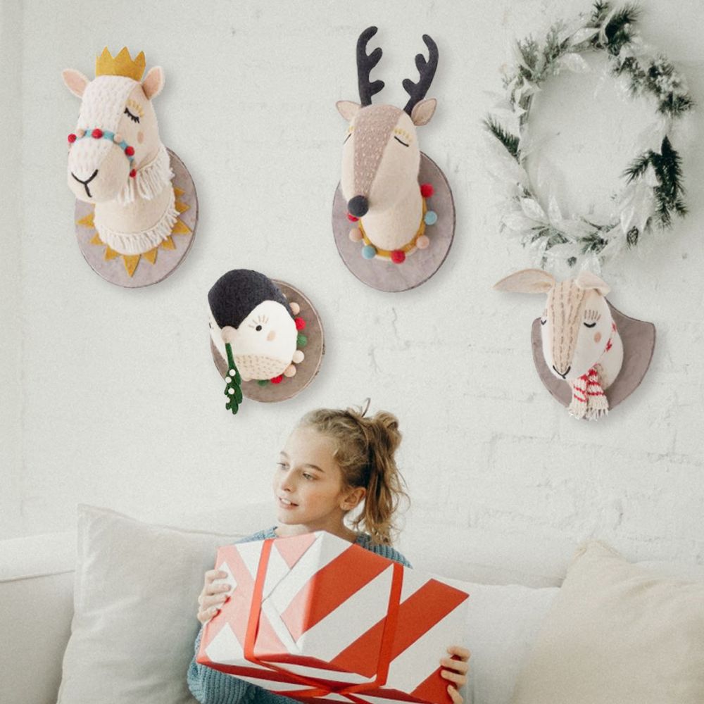 Your purchase makes a difference! Bring a sweet cozy friend into your holiday home décor with these adorable felt animal head wall mounts, sustainably made in Nepal by Women's Cooperatives. The penguin mount holds a sprig of mistletoe in his beak and has a pompom ring around his neck.