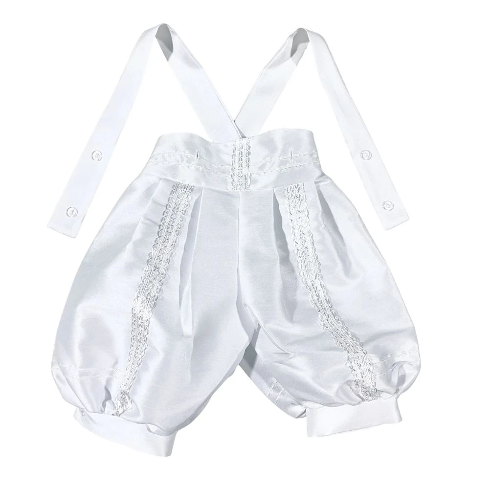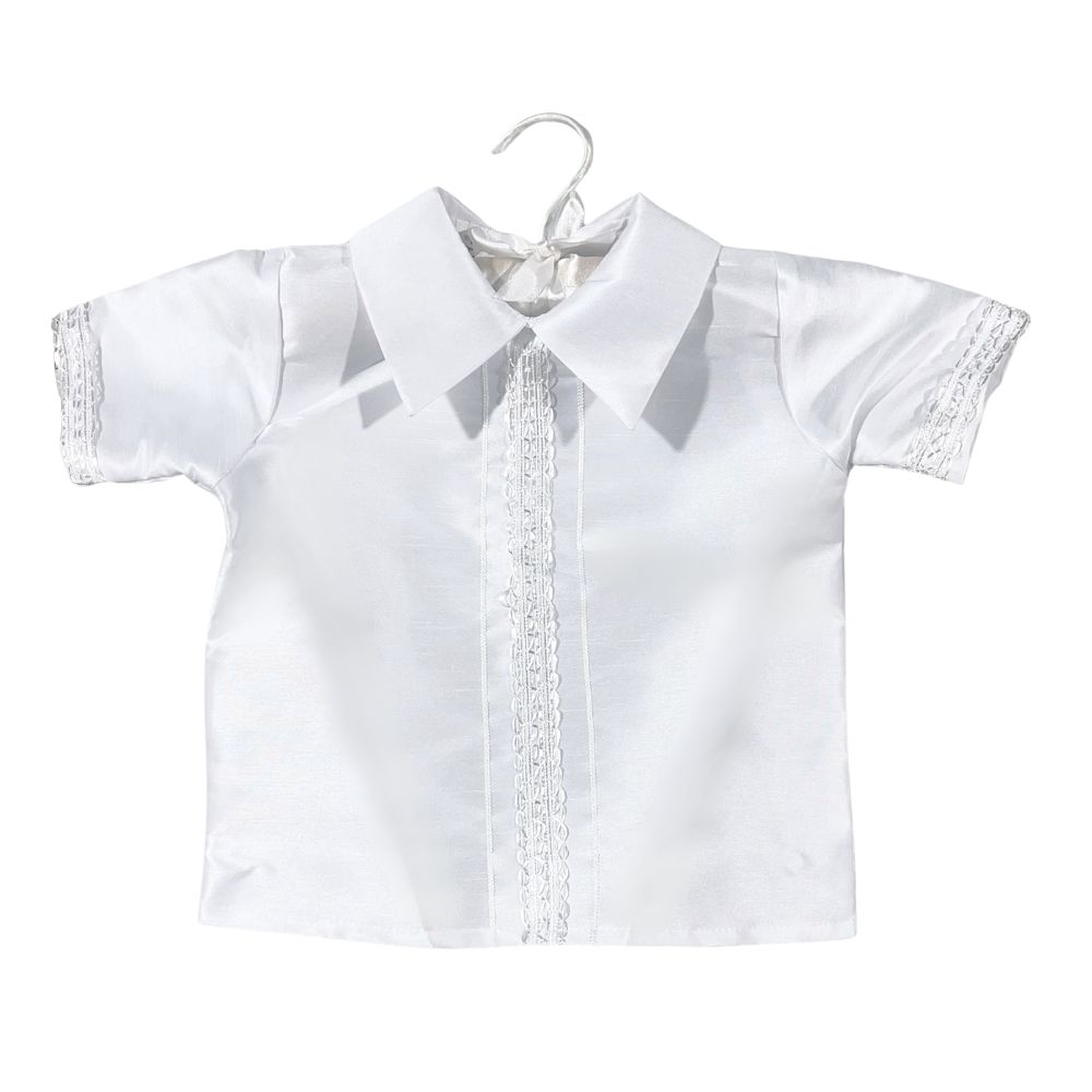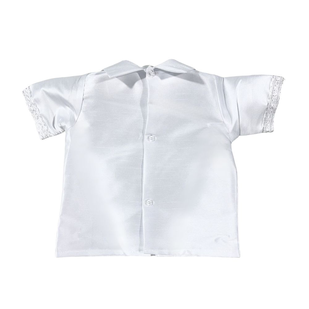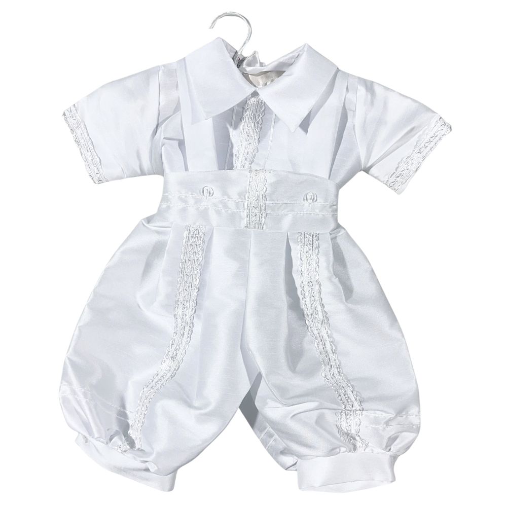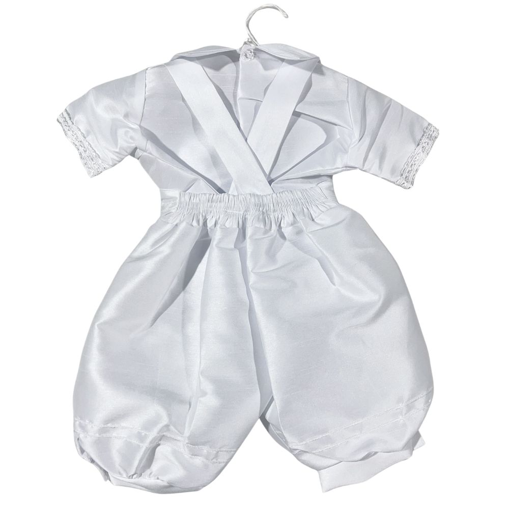 Celebrate your little one's sacred milestone with this exquisite boy's baptism and christening romper, lovingly crafted to convey grace and purity. Made from silky soft satin and adorned with intricate lace accents, this heirloom piece includes a removable shawl delicately embroidered with the image of Our Lady of Guadalupe. A matching bonnet completes the ensemble, adding a touch of traditional charm. Designed for comfort and elegance, this angelic outfit wraps your baby in warmth, faith, and timeless beauty, creating treasured memories for generations.